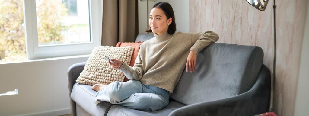 A chaise or cuddler sectional tucks perfectly into a corner, shaping a sanctuary for reading or napping. Add a dimmable lamp, small shelf, and textured throw to complete your upholstered retreat without crowding the rest of the room.